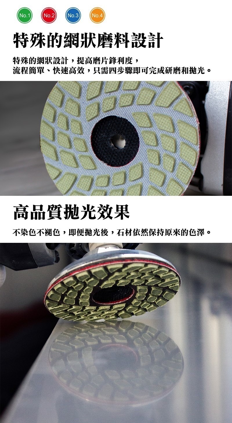 高品質拋光效果,不受石材顏色限制,即使是黑色或白色石材,也能保持極高的亮度與光澤