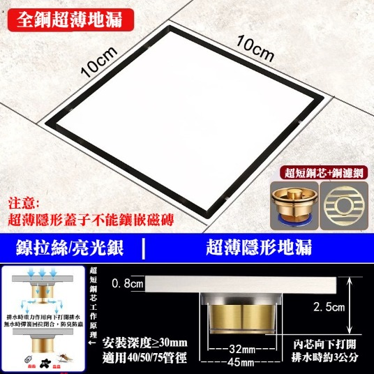 全銅超薄隱形地漏